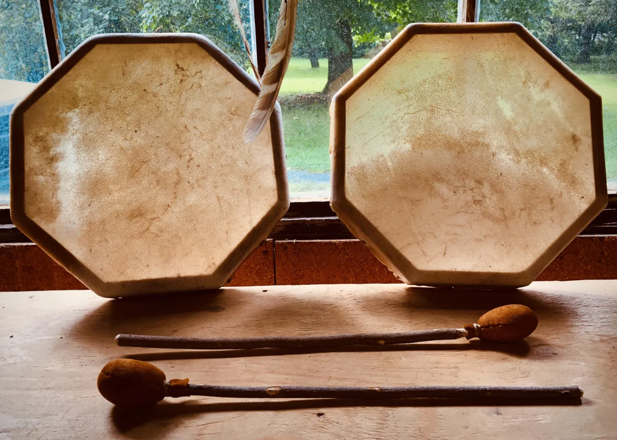 All drum building materials: frames, rawhide, sinew, buckskin, seasoned dogwood drum sticks, and tool use is included in the cost. We also encourage you to bring your own wood carving tools: knives, rasps, cabinet scrapers, etc., if you have them.